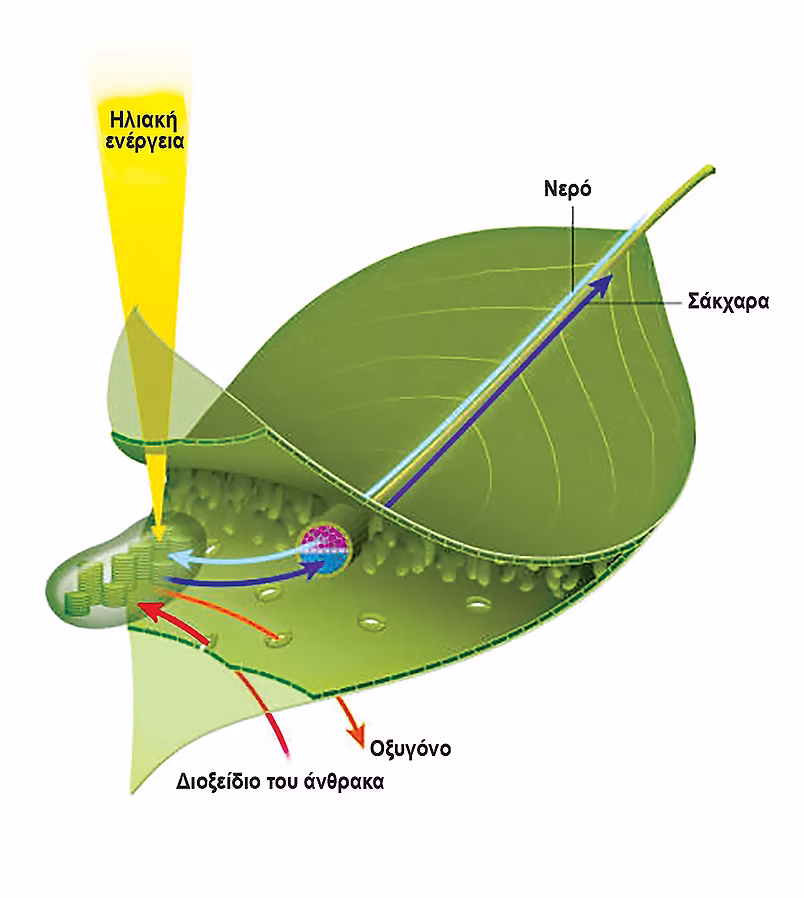 Μέσω της φωτοσύνθεσης τα μετατρέπει σε υδατάνθρακες, πρωτεΐνες και ενέργεια.